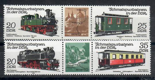 EAST GERMANY 1980 Narrow Guage Railways. First series. Set of 4 in joined pairs with centre labels. - 22110 - UHM